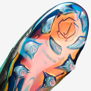 Cyclone 360 Soleplate: A dynamic traction system with conical studs in the forefoot and flex zones inspired by Hypervenom 3, enabling sharp cuts, explosive pivots, and balanced acceleration .